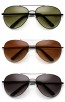 Classic Aviator Sunglasses with Spring Loaded Arms for flexibility. Available in different frame and lens colors to suit your color style. Features metal hinges, English style nose pieces, and dark-tinted polycarbonate UV400 protected lenses.
