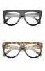 Oversize Horn Rim Wide Temple Flat Top Blue Light Filter Clear Lens Aviator Eyeglasses