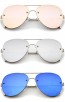 Modern Slim Metal Frame Brow Bar Colored Mirrored Flat Lens Aviator Sunglasses 60mm