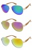 Classic Mirrored Thin Metal Crossbar Frame Wooden Arms Aviator Wholesale Sunglasses