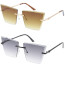 Luxe Metal Bevelled Rimless Color Tinted Gradient Lens Geometric Square Wholesale Sunglasses