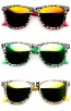 Native Print Two-Tone Color Mirror Lens Horn Rimmed Sunglasses