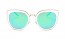 Subtle cat eye design with a compelling contrast between the golden metal frame and the translucent/black rims. Featuring scratch-resistant precious resin polarized lenses, a lightweight metal frame, and richly colored mirrored lenses.