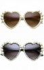Womens Oversized Full Pearl Decorated Frame Heart Shaped Sunglasses