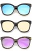 Women's Horn Rimmed Color Mirror Flat Lens Oversize Cat Eye Sunglasses 57mm